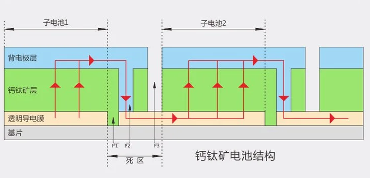 鈣鈦礦太陽電池的生產(chǎn)制造中,在每層材料被沉積后,可以采用激光刻蝕對P1/P2/P3進行劃刻,阻斷導(dǎo)通,保證電池間的絕緣性,形成單獨的模塊。